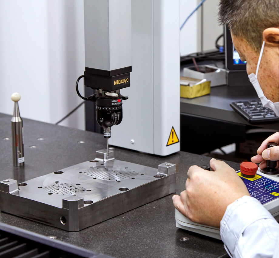 加工後は金型部品単位で三次元測定を行い、